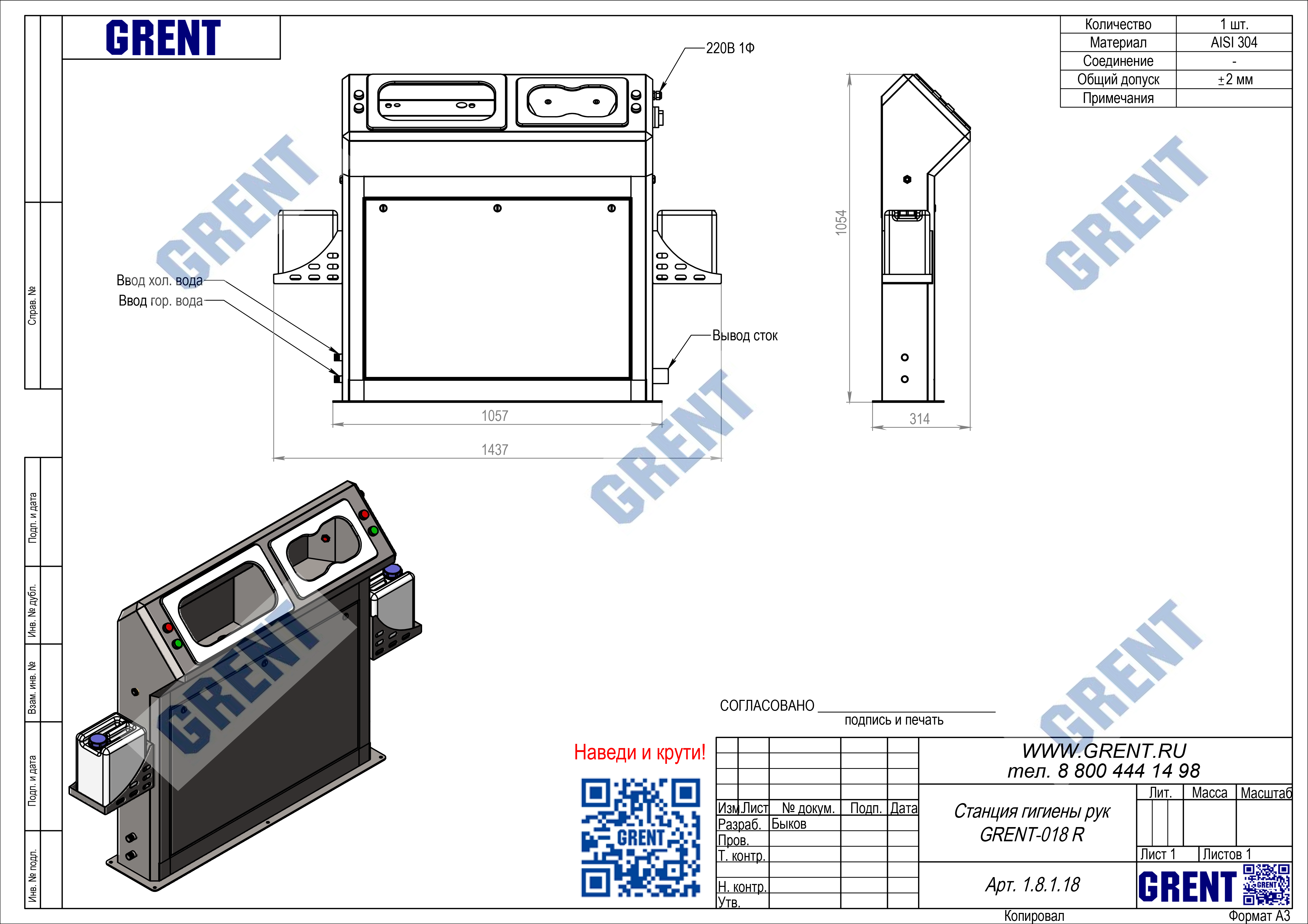 Станция гигиены GRENT 018 R предназначена для мытья и дезинфекции кистей рук при входе в чистые помещения на производстве.